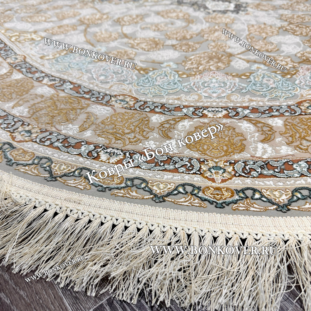 Красивый Иранский Круглый Ковер Для Гостиной Арт 30259 наполняет интерьер вашего дома теплом и уютом, гармонично сочетает в себе изящество и стиль. Он выполнен из износостойких материалов, прочный и долговечный.