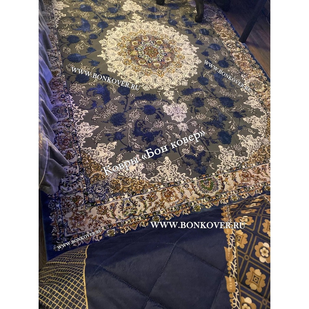 Шикарный Турецкий Ковер Для Медальон Дизайн 30573 Синий наполняет интерьер квартиры теплом и уютом, гармонично сочетает в себе изящество и красоту. Он соткан из износостойких материалов, комфортный и долговечный.