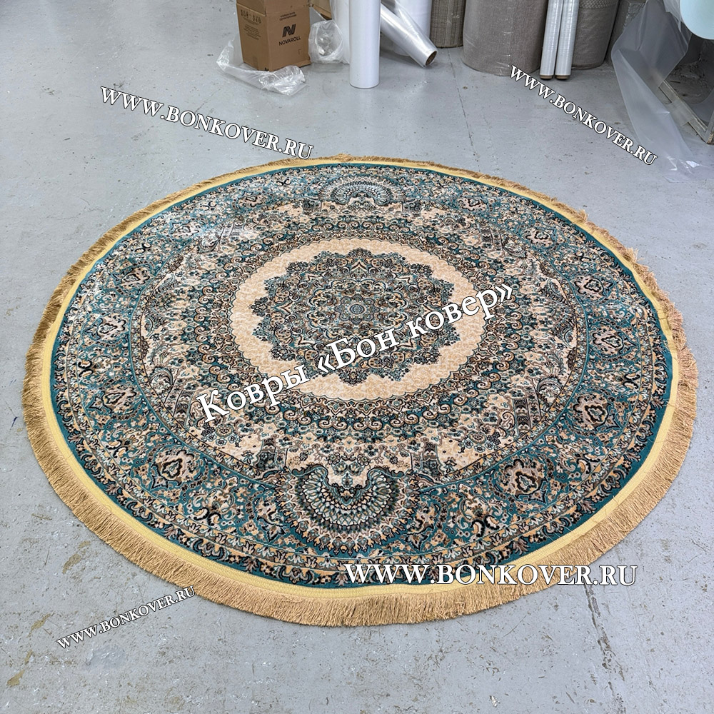 Восточный Ковер Для Гостиной Медальон Дизайн 28747 круг станет привлекательным дополнением интерьера, оформленного в современном или классическом стиле. Мягкое, но прочное, ковровое изделие обеспечивает тепло- и шумоизоляцию, отличается длительным сроком эксплуатации, надежностью, экологичностью и высокой износостойкостью, является отличной защитой от повышенной влажности в помещении и утеплителем для холодного пола. Благодаря качеству материалов, ковер не деформируется, сохраняет форму под тяжестью предметов мебели. За его поверхностью легко ухаживать.